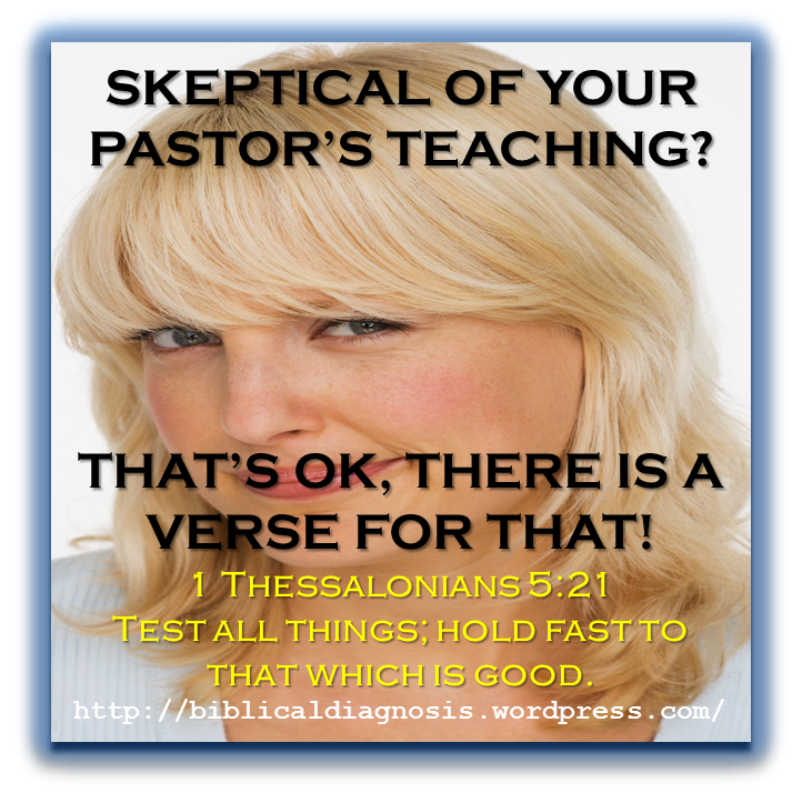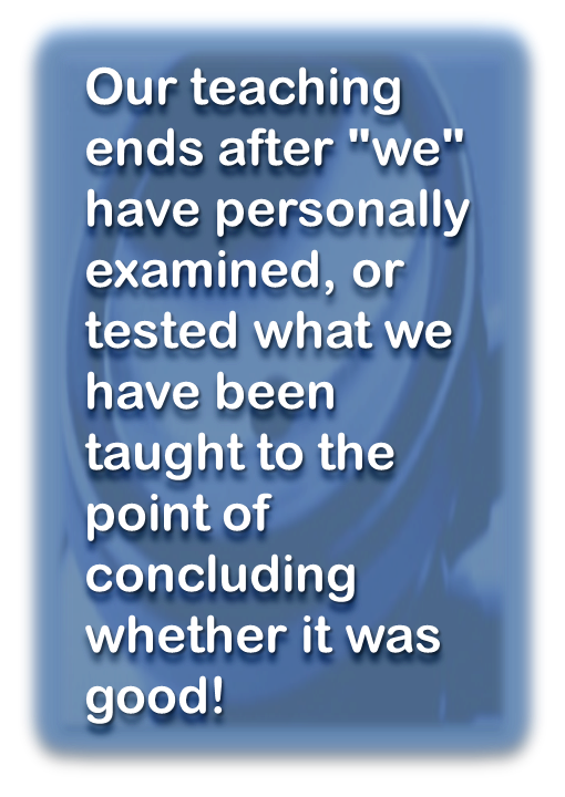 We are to test everything. And the most important thing we can and should test is what we are being taught. Our teaching does not end when our pastor closes his sermon. NO! Our teaching ends after “we” have personally tested, or examined what we have been taught to the point of concluding whether it was good! And granted, that could take some time. But when was the last time you examined your pastor’s teaching? That the act of testing is mentioned here in the immediate context of prophecies speaks volume of its importance when it comes to what we are taught. Comfort should not undermine our ability to test everything.