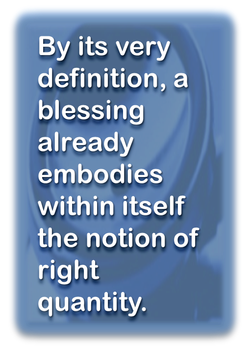 Galatians 3:14 is even more profound. What was the quantity of the blessing Abraham was promised? That’s a good one huh! All we can say with assurance is that it was the right quantity…that’s all, the right quantity! Therefore, we see from these records that by its very definition, a blessing already embodies within itself the notion of right quantity. The right quantity is one of the attributes that makes a blessing what it is…a blessing.