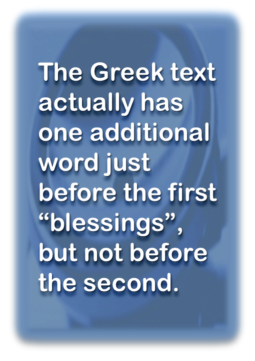 Of the two occurrences of the word “blessings” in this verse, the Greek text actually has one additional word just before the first one, but not before the second. The Greek word in question is epi. So, the structure of the verse is actually as follows…