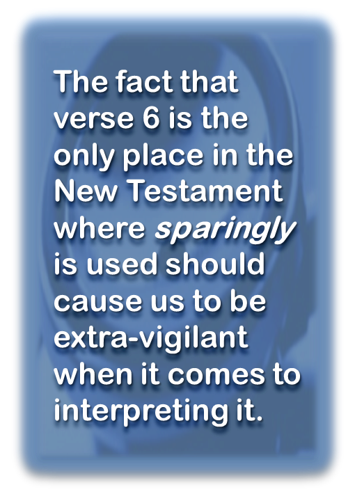 In addition, the fact that verse 6 is the only place in the New Testament where this adverb is used should cause us to be extra-vigilant when it comes to interpreting it. The argument postulated is that because of it, the best place for its interpretation should be this very verse – which is the immediate context of its use – rather than some secular source. And this allowed us to conclude that sparingly refers to the motivation behind the giving, to the exact same extent that on the basis of blessing does.